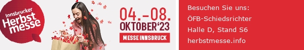 Wir freuen uns bekannt geben zu dürfen, dass die TFV-Schiedsrichter in diesem Jahr erstmals auf der Innsbrucker Herbstmesse vertreten sind! Von Mittwoch, dem 4. Oktober, bis Sonntag, dem 8. Oktober, findet ihr uns in der Halle D, am Stand S6. Diese aufregende Gelegenheit bietet uns die Möglichkeit, unsere Leidenschaft für Schiedsrichterwesen zu teilen, neue Gesichter in unserer Gemeinschaft willkommen zu heißen und unseren Schwerpunkt auf Verbände und Vereine zu präsentieren.