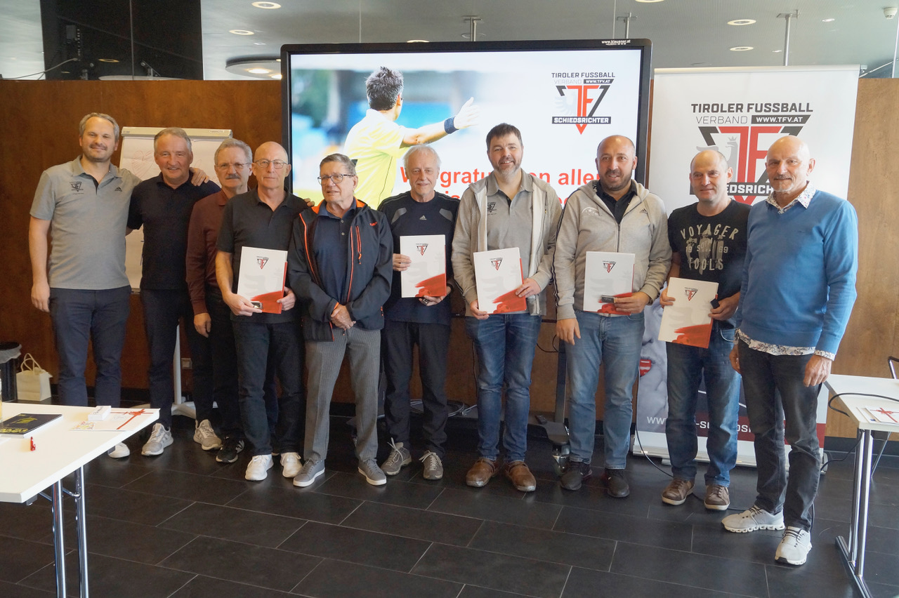 Im Rahmen der Frühjahresseminare des Tiroler Schiedsrichterkollegiums durfte sich der Vorstand der Schiedsrichter sehr freuen, einige überaus verdienstvolle Kolleg:innen für ihre großartigen Leistungen für das Schiedsrichterwesen und den Tiroler Fußballverband im Allgemeinen auszuzeichnen. Im Beisein von Obmann Gregor Danler, dessen Stellvertreter Thomas Pohl, den Elitekommissionsmitgliedern des ÖFB Konrad Plautz und Gerhard Gerstenmayer, Ehrenobmann Reinhard Kaserer und DFB-Lehrwart Lutz Wagner wurden feierlich die verdienten Auszeichnungen an die Kolleg:innen übergeben.