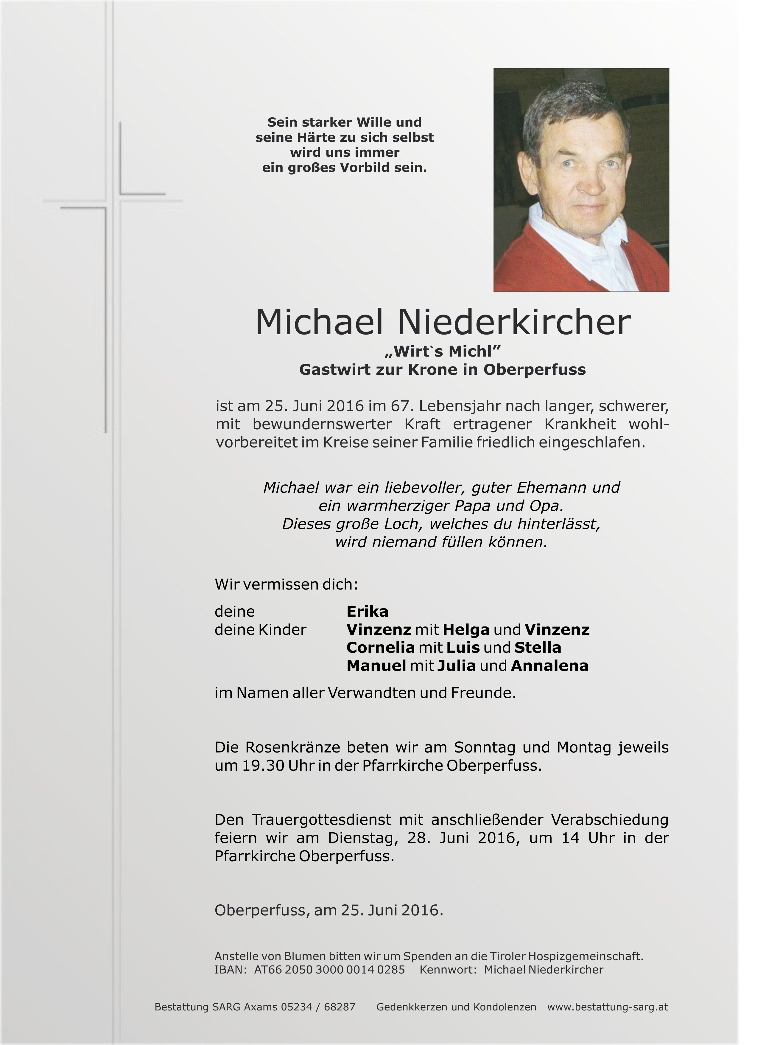 Wir trauern um Michael Niederkircher